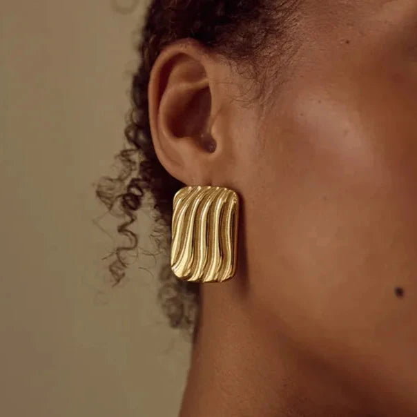 Aretes dorados con líneas