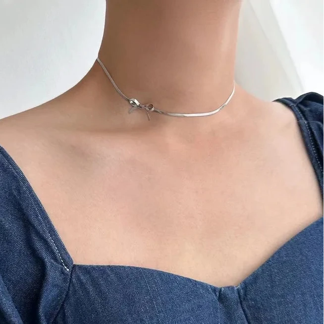 Collar de moño plateado