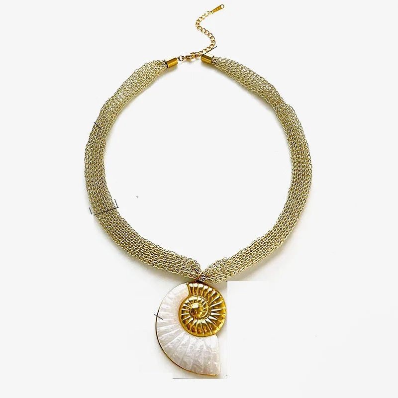 Collar de malla con dije de concha