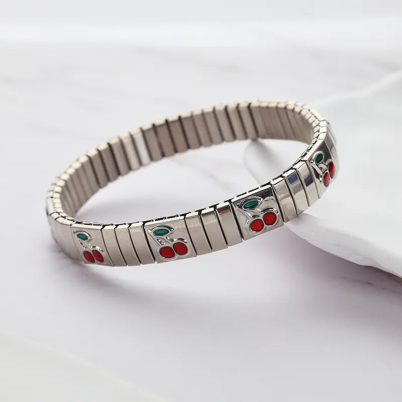 Brazalete plateado con cerezas